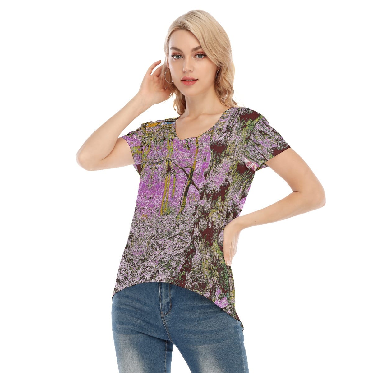 Purple Haze 2(Hugged by a Tree) High/Low V-Neck T
